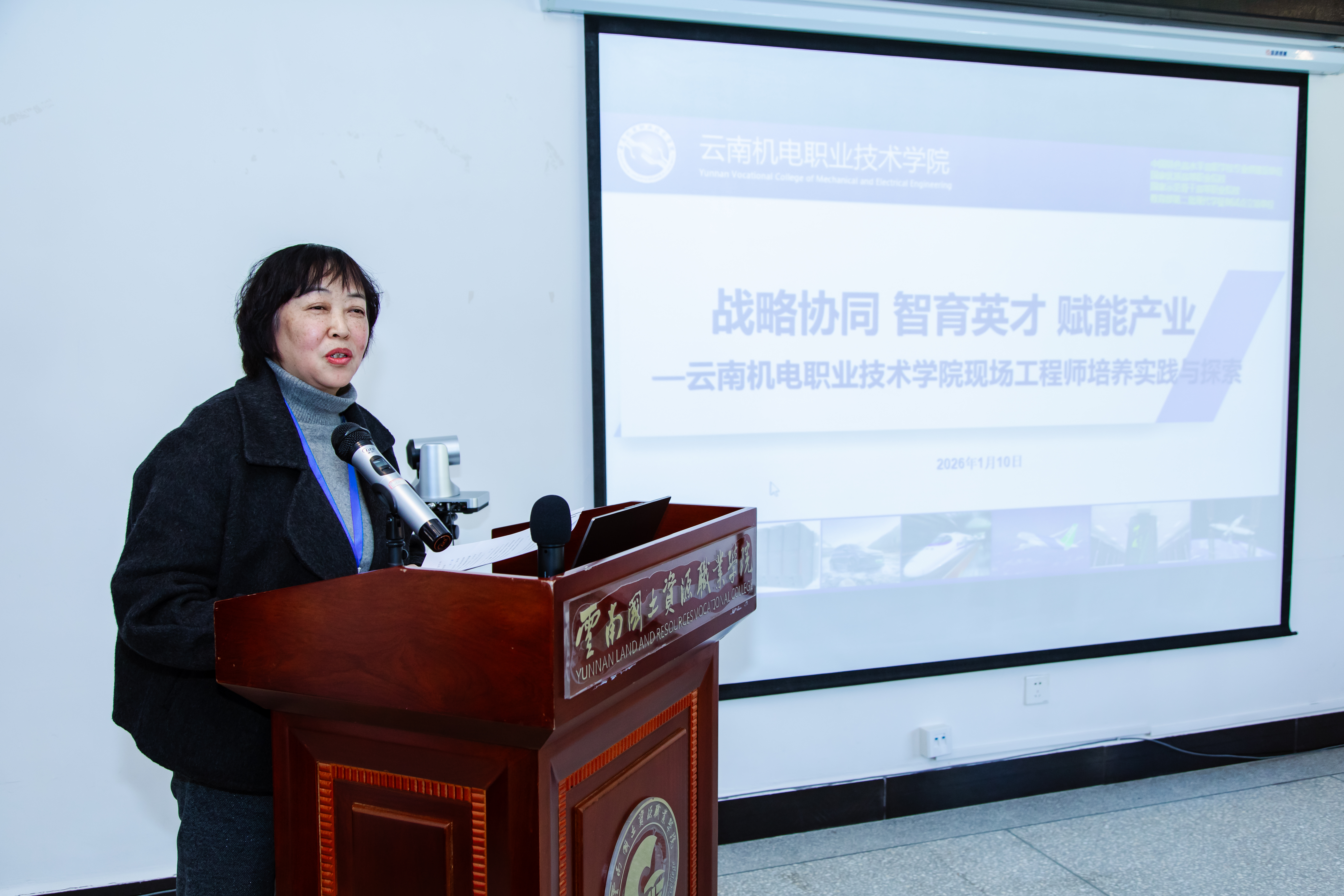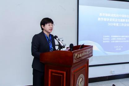 马良军主任代表专委会作2025年度工作报告以及2026年工作安排。她回顾了一年来,专委会聚焦交通新基建领域人才培养,通过搭建交流平台、推进6个首批试点专业建设,在育人模式改革、技能竞赛、品牌塑造等方面取得显著成效;同时强化组织引领,深化理论探索与一线调研。报告客观分析了当前工作中存在的不足,明确了2026年持续推进专委会组织与能力建设、实施高技能人才集群培养计划、深化现场工程师分领域标准开发、推动学徒制项目扩面提质与模式创新等重点任务。